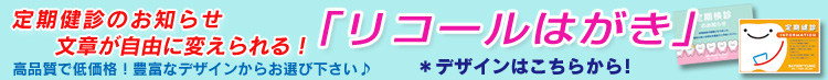 豊富なベースデザイン・サンプルデザイン常時100種以上掲載。検診(健診)葉書、リコールはがき、リコールカード、歯科診察券、プラスチック診察券、