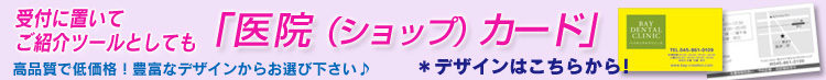 豊富なベースデザイン・サンプルデザイン常時100種以上掲載。検診(健診)葉書、リコールはがき、リコールカード、歯科診察券、プラスチック診察券、
